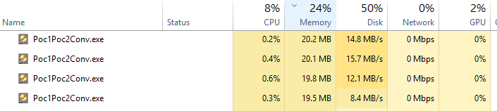 I originally added all of the files to the same instance of the PoC1 to PoC2 converter, but this only runs sequentially, so that’s not what I’m after. Instead, I opened multiple instances of the program and added one file to each.